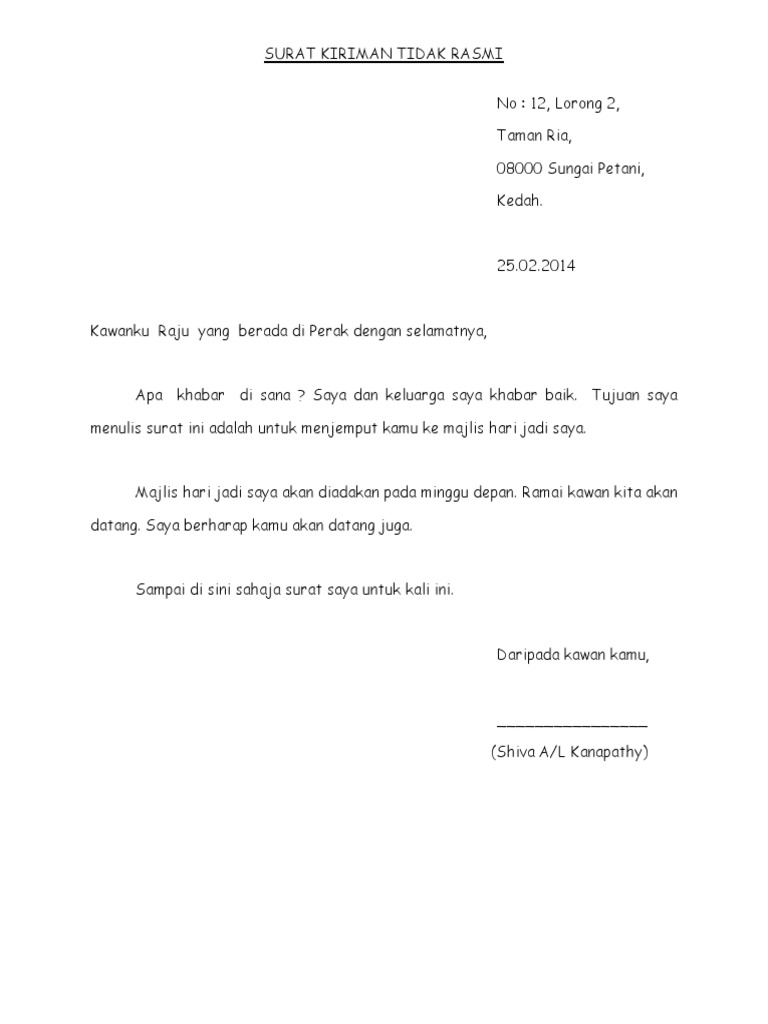 Surat Kiriman Tidak Rasmi Jemputan Hari Jadi Letter 7saudara Com